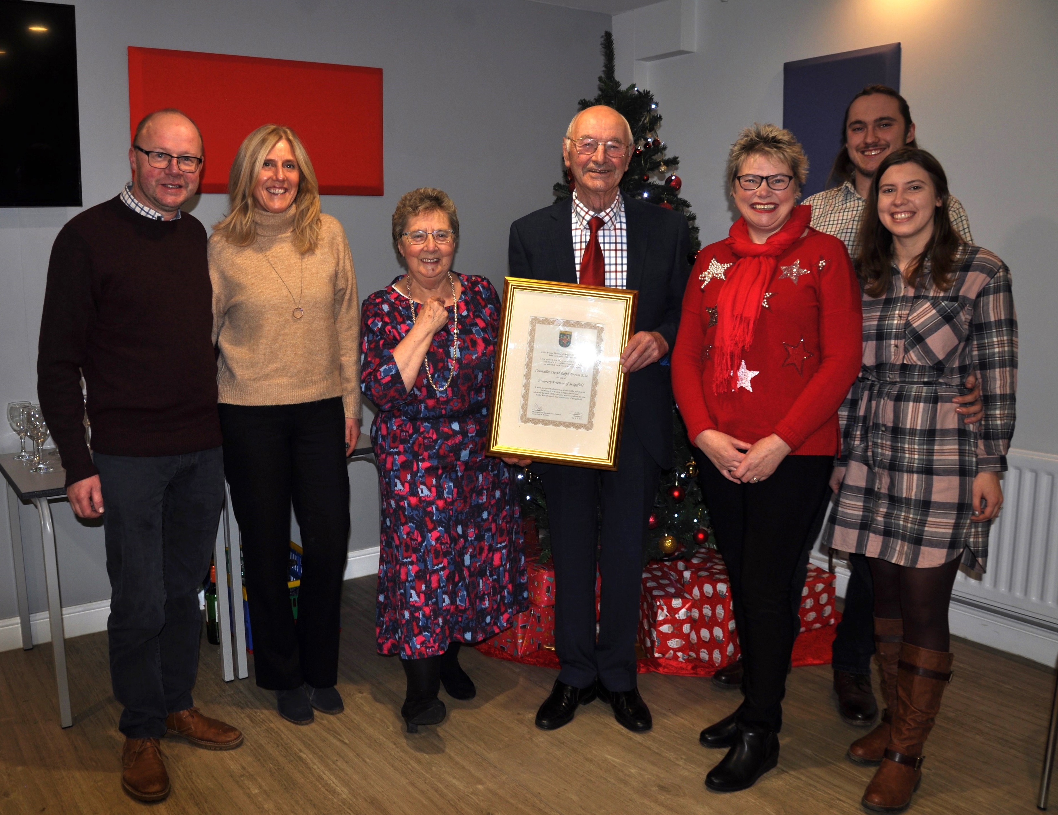 At the Town Council’s AGM in May 2022, Councillor David Brown was awarded the status of Honorary Freeman of Sedgefield in recognition of his long-standing public service to the Town and its residents. David was officially presented with his award by Chairman of the Town Council, Councillor Mel Carr, at a gathering of his family and friends on Thursday 1st December 2022.